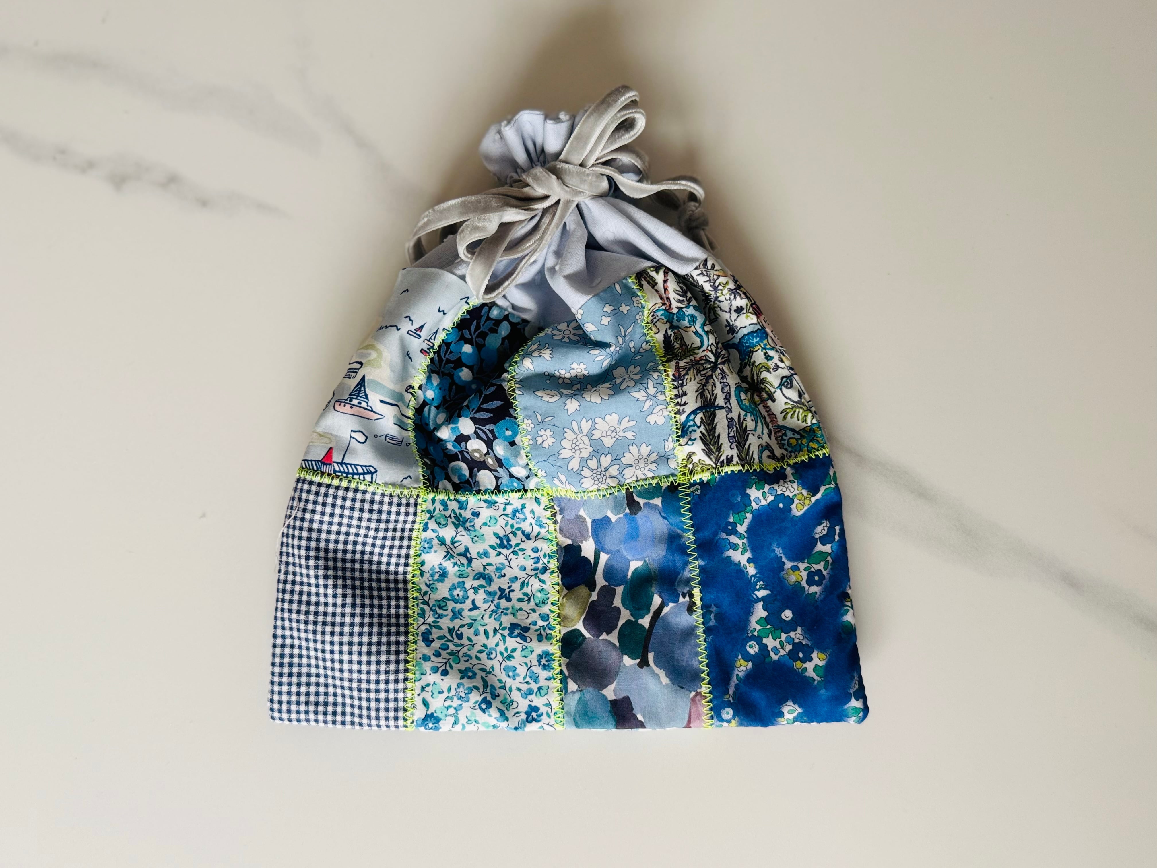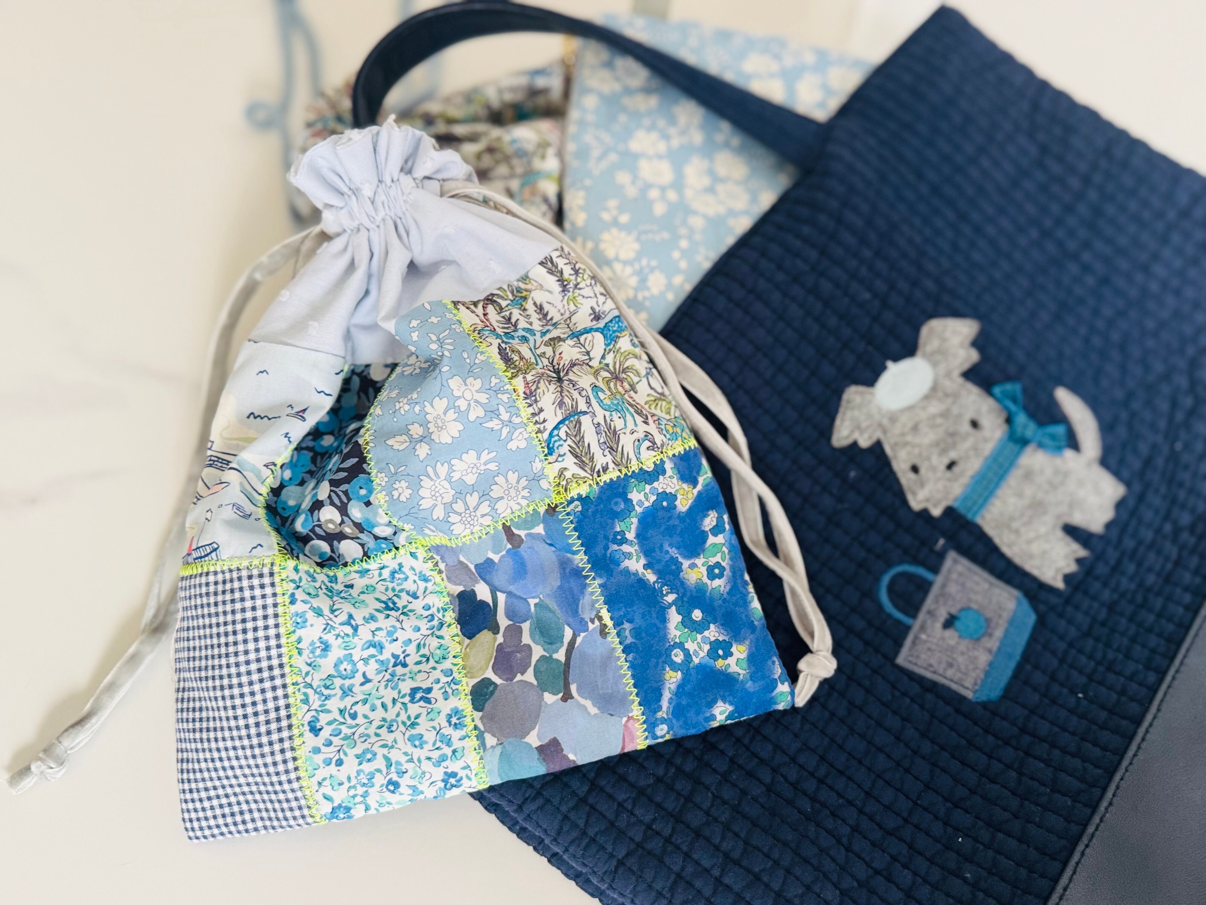 思い出と感謝の詰まった特別なパッチワーク巾着をお作りしました。